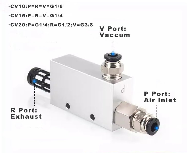 2.Vacuumi generaatorid, millel on laias valikus tüüpide ja jõudlusega, et täita teie rakendusnõueid.CV seeria on plaadi vaakumgeneraator.