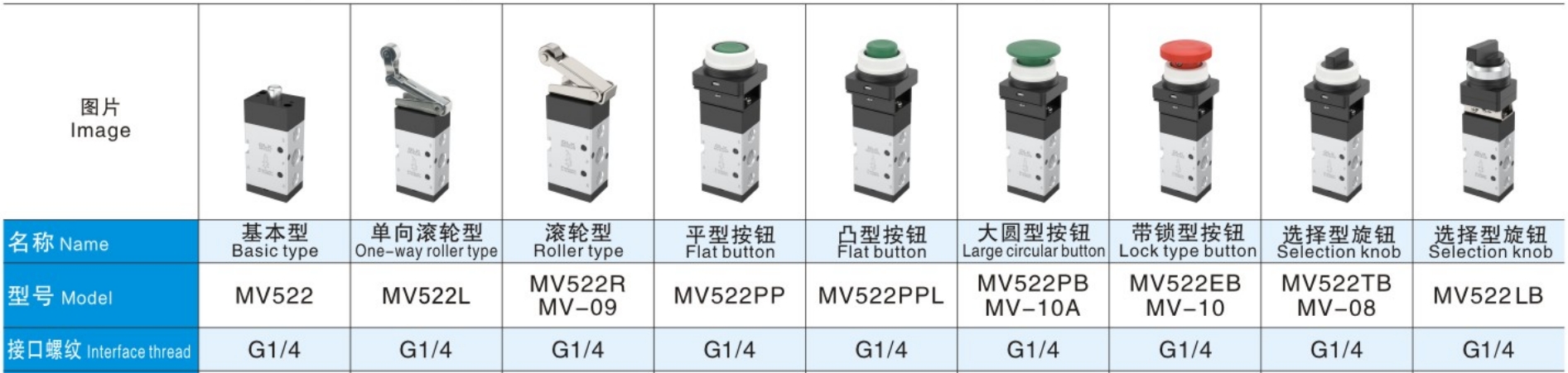 MV522 seeria mehaaniline nupu juhtventiil 5 -suunalised üldised parameetrid