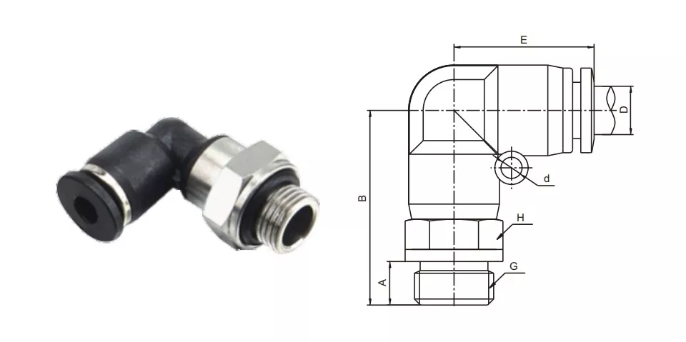 PL-G meessoost küünarnuki surumine torude paigaldamisel on 90-kraadine küünarnuki pistik ja G-niit, mis sobib ideaalselt suletud ruumides või kus on vaja torude ümbersuunamist. Tihendusrõngastega varustamine õhu või vedeliku lekke vältimiseks.