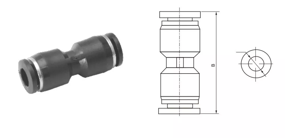 PU Union Straight Push toru paigaldamisel on pneumaatilistes süsteemides kasutamiseks kasutamiseks mõeldud pistikühendused.