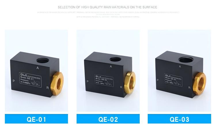 OLK (Oleikai) pneumaatiline väljalaskeklapp vähendades tõhusalt süsteemi heitgaaside aega. Suure voolu läbimõõduga válvla de põgenemise QE võib kiiresti gaasi tühjendada. Käsk, et süsteem saaks kiiresti gaasi rõhku vabastada ja vajadusel tööde efektiivsust parandada, on soovitatav paigaldada QE -seeria kiired väljalaskeventiilid sinna, kus süsteemis on vaja heitgaase, et tagada heitgaaside kanal püsimata jätmine.