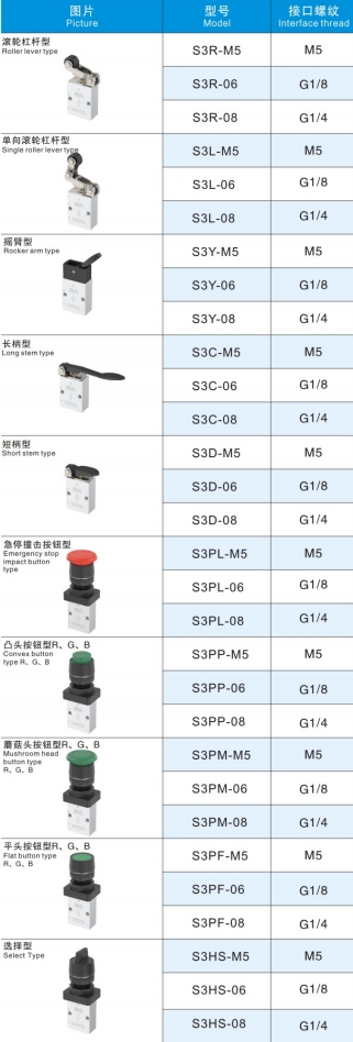 Tere tulemast hulgimüüki või kohandatud S3 -seeria mehaanilise nupujuhtimisventiili 3 tee meie tehasest igal ajal. Pakume teile meie toodete tehase soodushindu. OLK pneumaatiline on S3 -seeria mehaaniliste klappide tootjad ja Hiinas tarnijad.