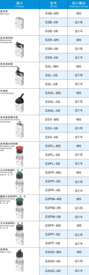 2. S3PF, S3PM, S3PP, S3PL, S3Y, S3HS, S3C, S3D, S3D seeriad käitatakse käsitsi, millel on erinevad kontrollpeade struktuurilised kujud erinevates tingimustes.