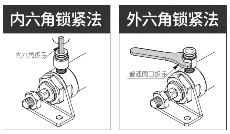 Kasutage kuuskantvõtit või kuuskantvõtit, et kruvida liitmik silindri õhu sisse-/väljalaskeava keermetesse, nagu on näidatud joonisel. Pingutusmomenti vaadake jooniselt.