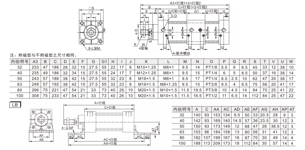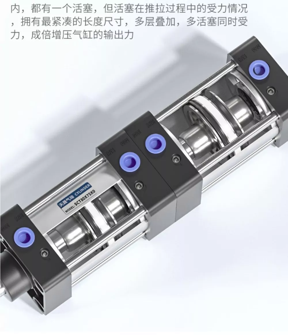 ·Tilindri tüüpi silinder; esi- ja tagakaaned on kõrge töökindluse tagamiseks ühendatud alumiiniumtoru korpusega ühendusvarrastega.