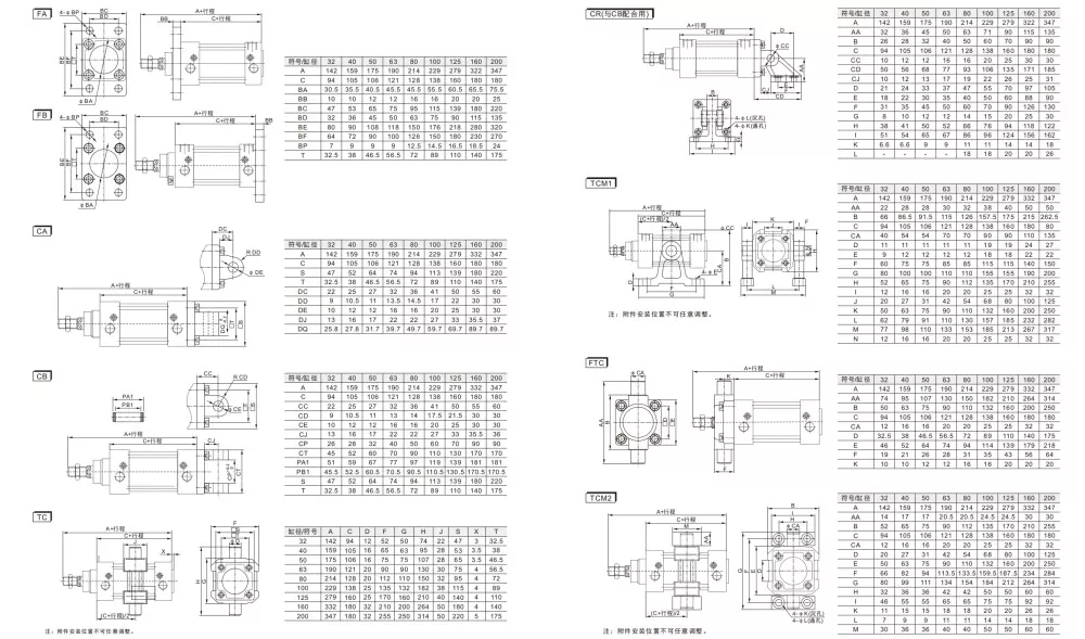 SU pneumaatilist silindrit ja SI õhusilindrit ei saa omavahel vahetada ning tarvikuid (CA /CB jalaklambrid,FA-äärikud,TC-M, liigendipead) ei ühildu
