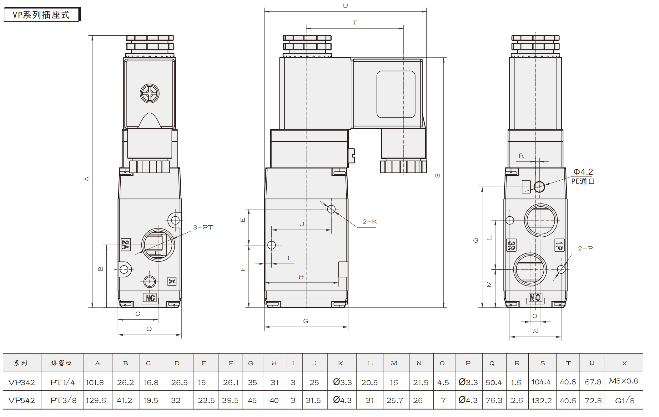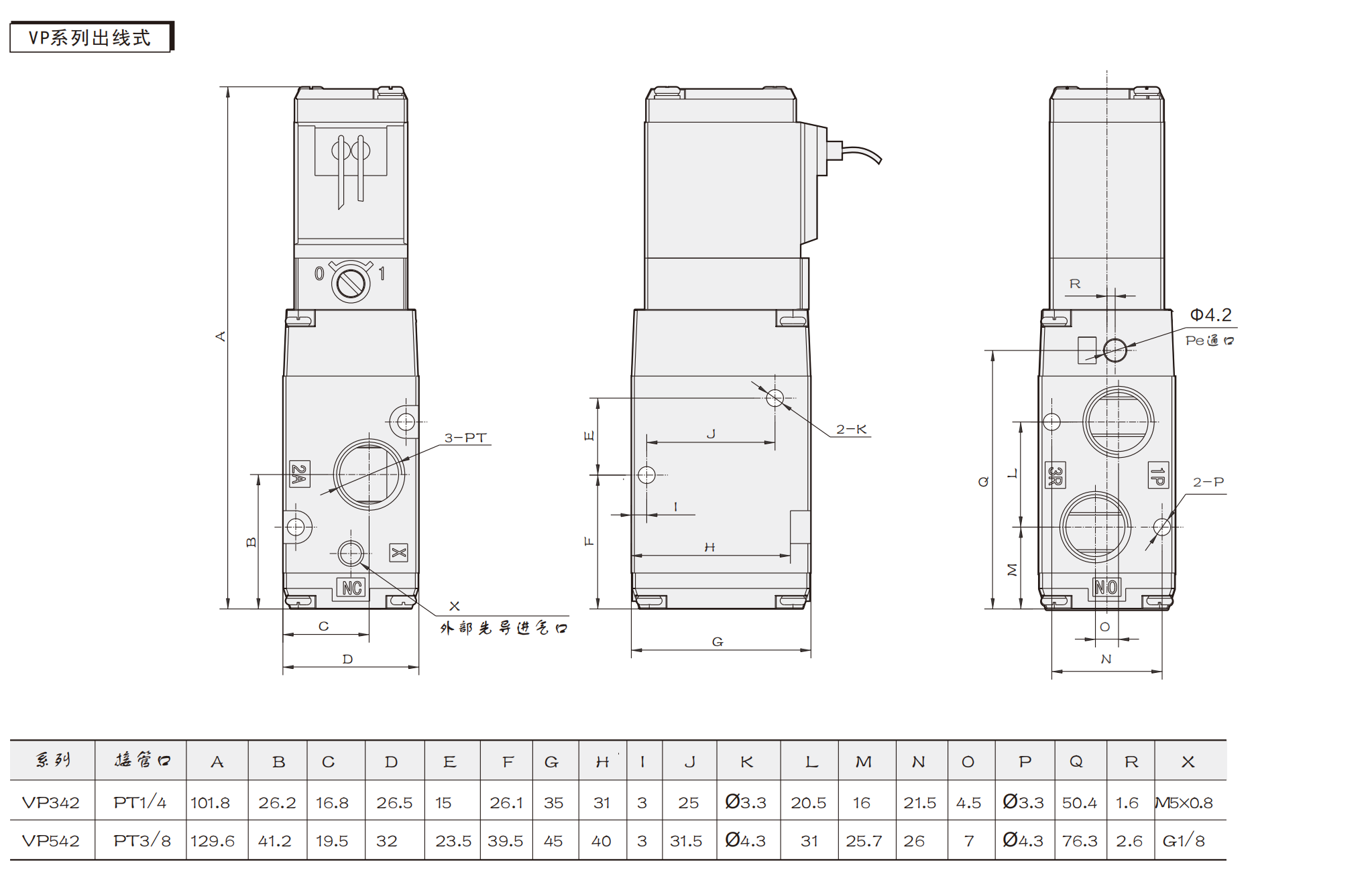Ouleikai (OLK) VP-seeria 3-suunalised solenoidventiilid on saadaval kahes juhtimistüübis: sisemine ja väline juht. Tavaliselt avatud ja tavaliselt suletud funktsioone saab vahetada, muutes alumise katte paigaldussuunda. VP-seeria pakub valimiseks mitut standardpinget.